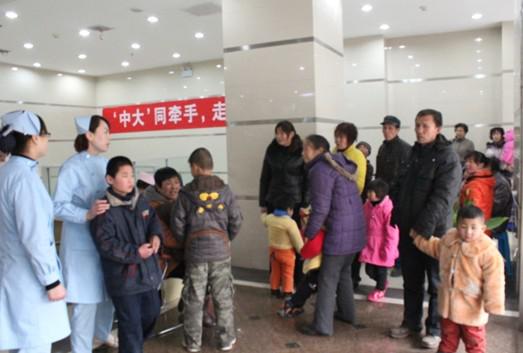 2013年1月23日上午9点,西安中大耳鼻喉医院耳病诊疗中心的接待大厅里走进来18名福利院的孩子,稚嫩而欢快的童声充满大厅,使平日肃穆的医院平添了几分生气,细心的护士送上一杯杯水,工作人员向前拥抱着可爱的孩子们……“‘中大’与你同牵手,走进你世界”公益主题活动由此拉开序幕。