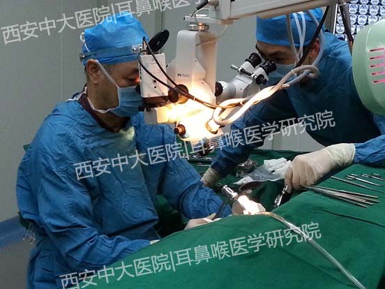 西安新城中大张全安教授在耳部显微镜下实施手术