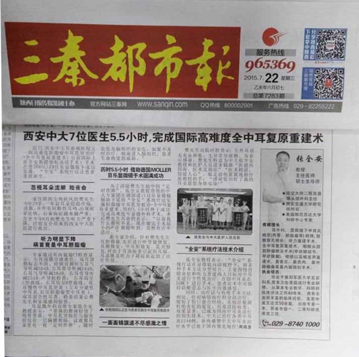 首 页 > 我院要闻 > 【三秦都市报】7位医生5.5小时,西安中大完成高难度全中耳复原重建术