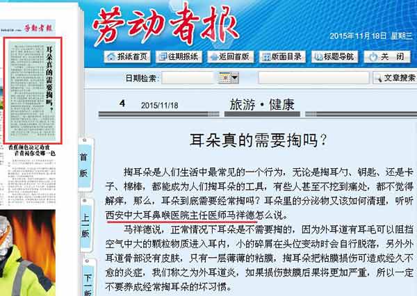 首 页 > 媒体报道 > 【劳动者报】专访中大医生马祥德:耳朵真的需要掏吗?